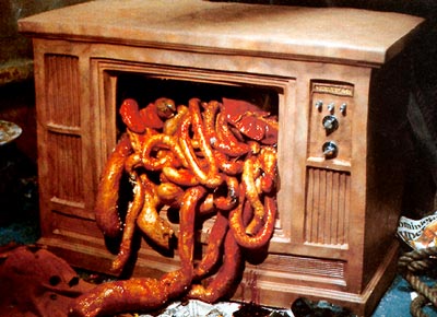On pourrait y voir la fable morale illustrant le verset très connu de la bible, qui vit par la violence gratuite et la pornographie mourra par la violence gratuite …  mais aussi une réponse délirante aux inquiétudes quant à l’impact sur la vie et le mental de ce genre de programme sur ceux qui les regardent. Max Renn de par la tumeur provoquée par l’exposition à l’émission Vidéodrome se met à générer autour de lui des scènes du même acabit, il se laisse aller à une relation sado masochiste avec Nicky Brand, la vedette d’un show radiophonique dédiée à l’aide de personnes en détresse psychologique. Il finira dans une scène d’anthologie par se retrouvé programmé, se transformant en un lecteur de Cassettes vidéos humain. Voir les conséquences de la consommation de softcore et de snuff dans le monde délirant du film, nous amène à nous demander « et dans la vrai vie ça se passe comment ? Qu’est-ce que je risque ?  si je regarde des scènes sado-maso est ce que je vais y prendre goût ? et si c’est le cas est ce que c’est une concrétisation de quelque chose que j’avais toujours porté en moi ou est-ce que j’ai été corrompu ? »